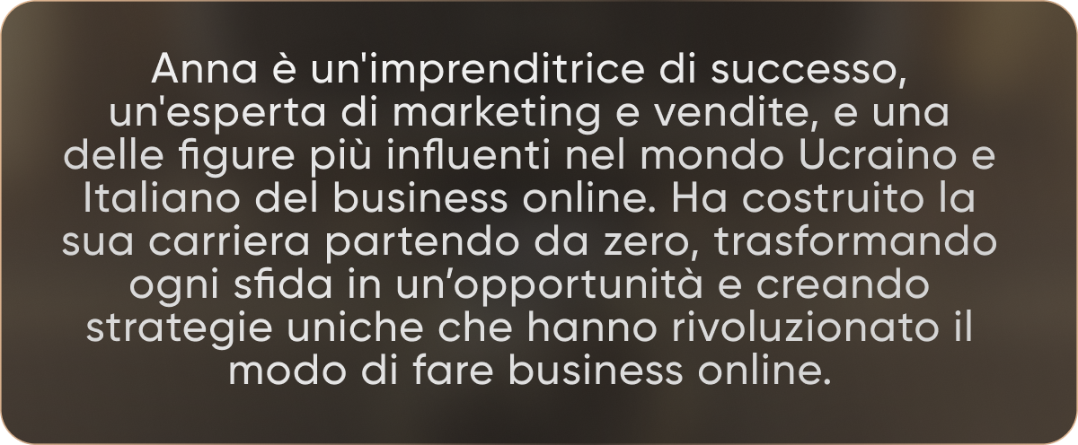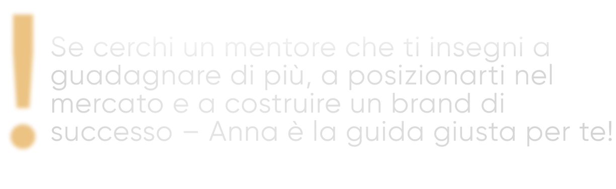Oggi Anna insegna agli altri come creare brand che le persone desiderano, posizionarsi sul mercato e generare vendite senza investire milioni in pubblicità.
