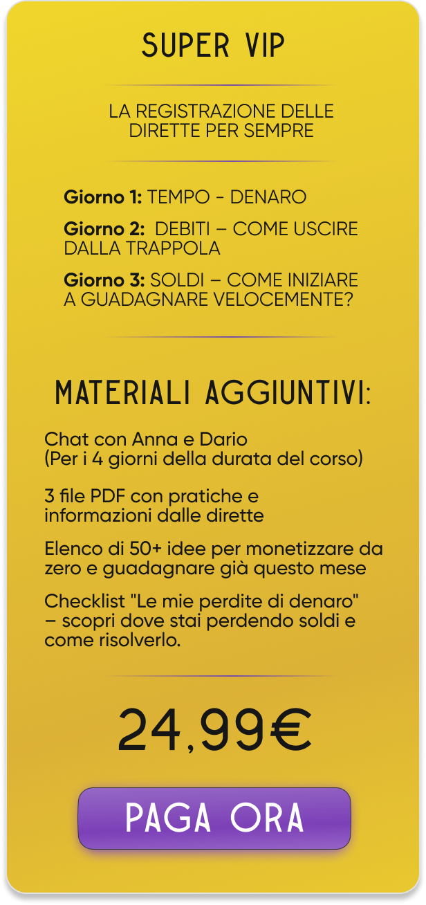 Per maggiori dettagli, consulta la “Refund Policy” sul nostro sito: https://annagyrol.com/intensive_tempo_debiti_denaro
